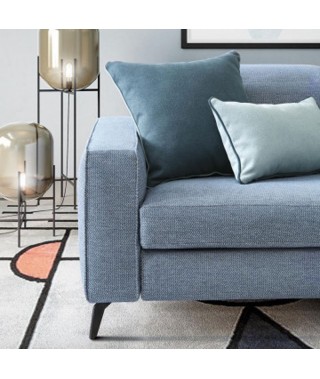 In tessuto o texil completamente sfoderabile (per composizione e lavaggi fare riferimento all’etichetta). In pelle sfoderabili cuscini seduta e schienale. Data l’origine naturale delle pelli impiegate, negli elementi con rivestimento in pelle sono necessarie cuciture aggiuntive rispetto gli elementi con rivestimento in tessuto. Per finitura bicolore (scocca-cuscinatura) +10% dal prezzo di listino della categoria più alta dei rivestimenti utilizzati. Non rifinito a lato. Meccanismo di giunzione con piastre ad incastro.