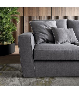 In tessuto o texil completamente sfoderabile (per composizione e lavaggi fare riferimento all’etichetta). Non disponibile in pelle. Personalizzazione del bordo compresa nel prezzo. Per finitura bicolore (scocca-cuscinatura) +10% dal prezzo di listino della categoria più alta dei rivestimenti utilizzati. Rifinito a lato. Meccanismo di giunzione a tenaglia.