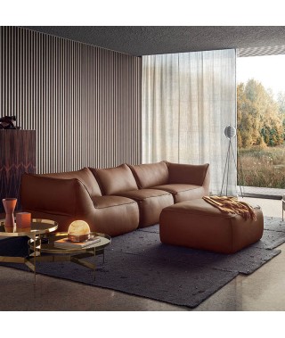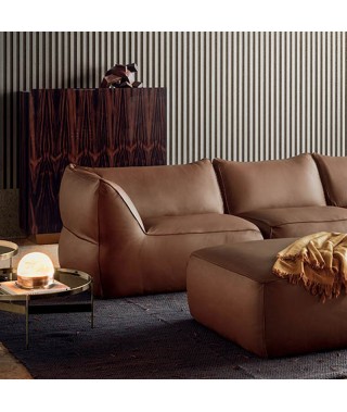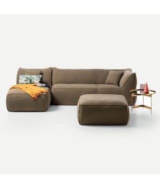 La modularità comprende elementi lineari, laterali, poltrona, chaise longue e pouf.