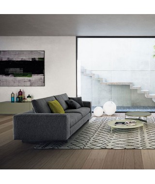 Cuscini e piano di seduta hanno la peculiarità di terminare a filo sul fronte e sul retro.