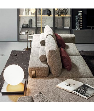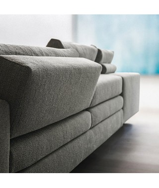 Lo schienale è dotato di un apposito meccanismo che ne permette la reclinabilità con un semplice gesto. A chiudere la sequenza ci sono i cuscini dello schienale, con rullo annesso. Combinando gli svariati moduli, è ampia la gamma di configurazioni realizzabili, ideali anche per il centro stanza.