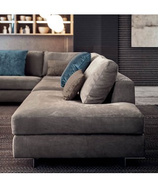 La collezione offre vasta componibilità con moduli lineari, laterali, angolari, a penisola, chaise longue, poltrona e pouf.