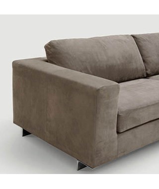 Doppia versione per lo schienale: cuscini larghi e bassi, oppure stretti ed alti, dotati di rullo posteriore, per un sostegno dorsale completo. Look nuovo per il basamento, delineato da eleganti piedi dal profilo a lama, oppure da piedini a scomparsa.