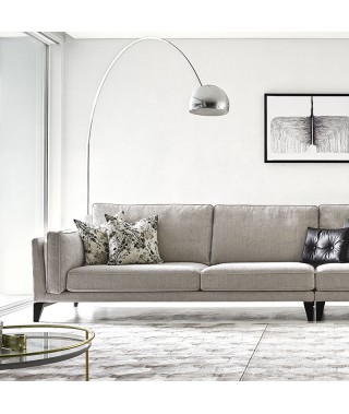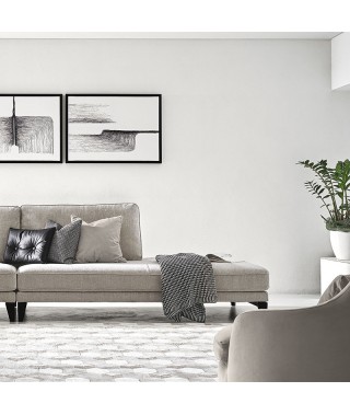 Il divano Queens ha una linea rigorosa ma ricercata nelle proporzioni e nei dettagli sartoriali e gradevolmente ammorbidita dal doppio bracciolo e dalla cuscinatura particolarmente soffice e confortevole.