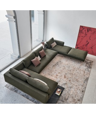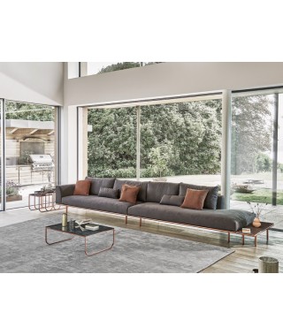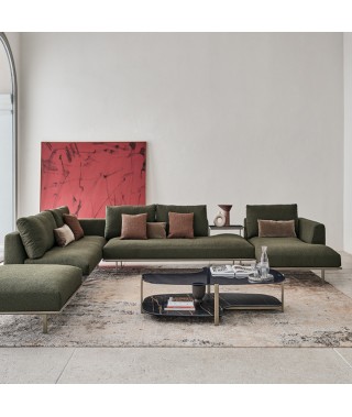 Un vero e proprio sistema di arredo che combinando la modularità dei suoi elementi con gli accessori a lui dedicati risponde ad esigenze di design, comodità e funzionalità. Il generoso utilizzo della piuma d’oca all’interno delle cuscinature, garantisce un elevato livello di comfort, oltre a conferire a tutto l’ambiente un aspetto vivo e accogliente.