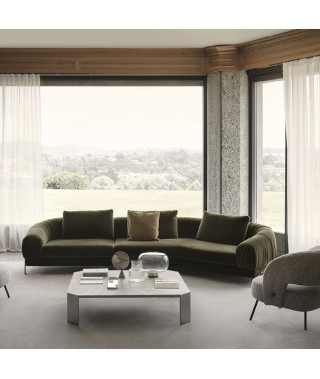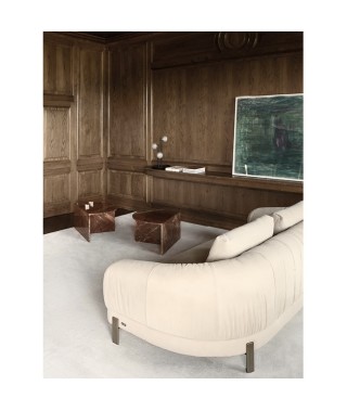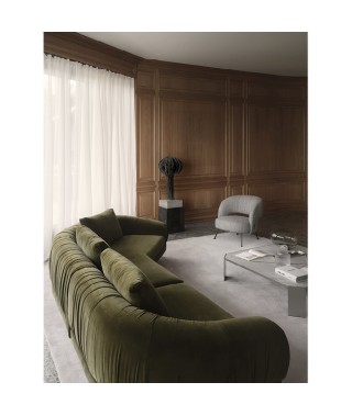 Crumble è la rappresentazione assoluta della morbidezza. La progettualità crea sedute dalla forma sensuale e accogliente, generosamente armoniosa. Caratterizzato dallo schienale rivestito in maniera estremamente ricercata, realizzato completamente a mano che lo rende un pezzo unico.