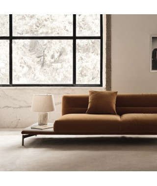 Divano modulare dalle proporzioni eleganti e dalle linee rassicuranti. Con rivestimenti in tessuto o pelle, Gary cita le classiche tipologie capitonné, attualizzandole con uno stile di vita più libero e informale. Del progetto fanno parte divani lineari, composizioni angolari, chaises longue.