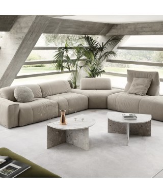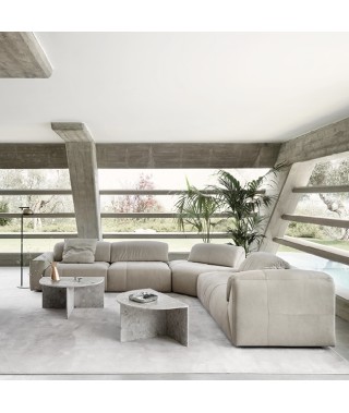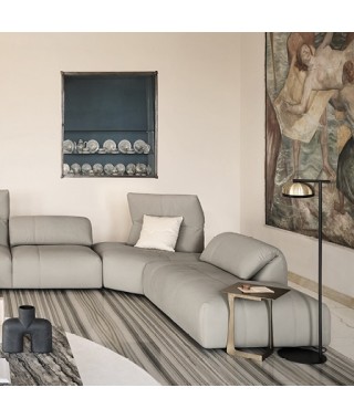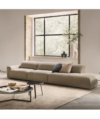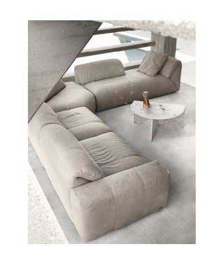 Un divano dalle forme morbide e rassicuranti, in cui la possibilità di movimento dello schienale, l’aspetto soffice e l’imbottitura esaltano il comfort dando vita a molteplici interpretazioni.