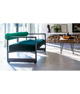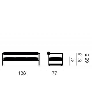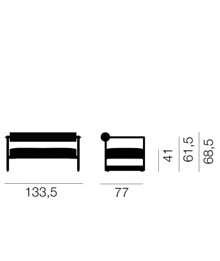 Materiali: struttura in ghisa verniciata poliestere. Cuscini sfoderabili in poliuretano espanso rivestito in tessuto Kvadrat