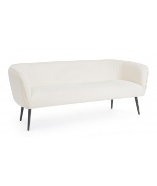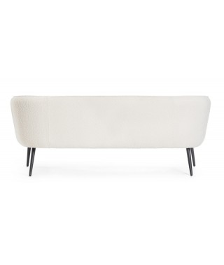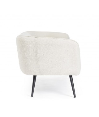 STRUTTURA IN LEGNO COMPENSATO, GAMBE IN ACCIAIO VERNICIATO A POLVERE EPOSSIDICA. RIVESTIMENTO IN POLIESTERE EFFETTO BOUCLE'. DENSITA' IMBOTTITURA SEDUTA 28KG/M3 SCHIENALE 20KG/M3. NON SFODERABILE.
