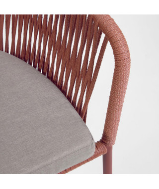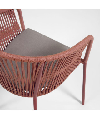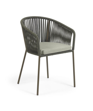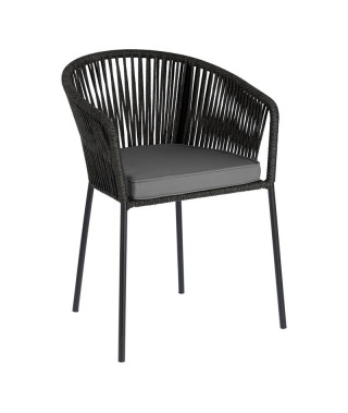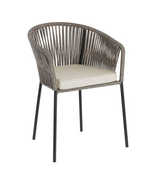 Per i pasti in casa o in balcone, la sedia Yanet aggiunge un look casual a tutti gli ambienti grazie alla sua seduta con corda intrecciata a mano e materiali adatti sia al chiuso che all'aperto.