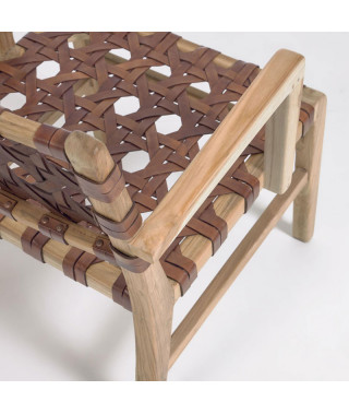 Descrizione : Il tuo momento di relax è sacro. Per questo, accompagnalo con un pezzo dedicato al comfort che è naturale e autentico come te. Nuru ha una struttura con braccioli in legno massello di teak sostenibile e autentica pelle intrecciata a mano.