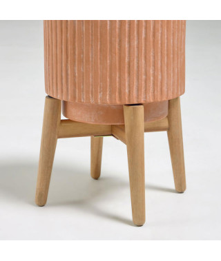 La fioriera Elima in terracotta protegge la tua pianta all'interno e all'esterno, essendo resistente all'umidità e ai raggi UV. Aggiungi un aspetto naturale ai tuoi spazi, con un materiale minerale e il suo supporto in legno.