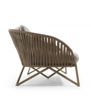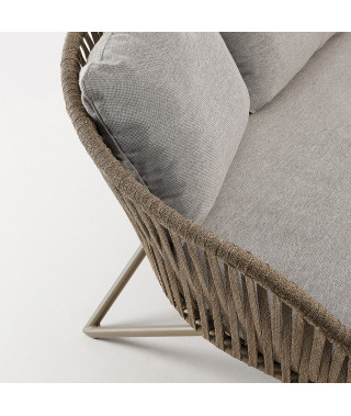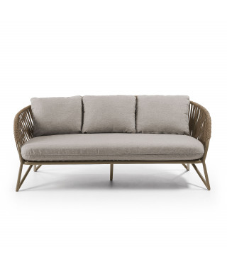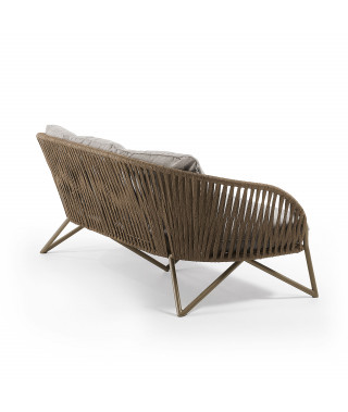 Il divano Branzie di 3 posti è disegnato dal nostro team ed è fatto con uno dei materiali top del momento: la corda. Lo schienale e la seduta sono intrecciate a mano, seguendo le curve della struttura, che le danno un aspetto organico. Struttura e c orda sono dicolore marrone e rendono quest'arredo imprescindibile per uno spazio natural trendy.