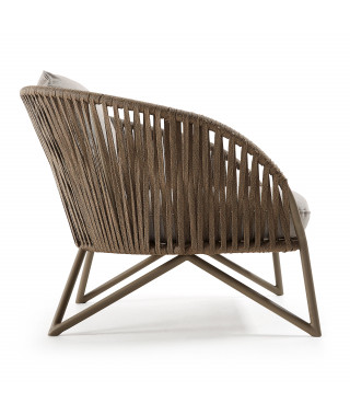 La poltrona Branzie è disegnata dal nostro team ed è fatta con uno dei materiali top del momento: la corda. Lo schienale e la seduta sono intrecciati a mano, seguendo le curve della struttura, dandogli un aspetto organico. Strutta e corde sono di colore marrone e rendono quest'arredo indispensabile per uno spazio natural trendy.