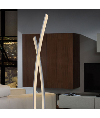Piantana in alluminio e metallo cromato. Illuminazione LED interna e diffusori in materiale acrilico opalescente. 25,4W LED. 2.080 lumen. 4.000K. (Consumo: 189 ore di luce per meno di 1€)