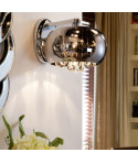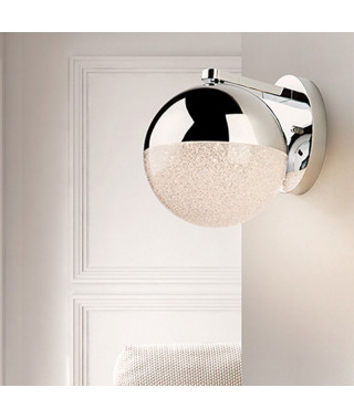 Applique a 1 luce, in metallo cromato. Paralume sferico da Ø20 cm. in metallo e policarbonato testurizzato all’interno. 9,6W LED. 3.000K. 672 lumen.