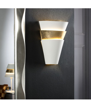 Applique in metallo laccato. Paralume in metallo bianco avorio opaco e dorato. Diffusore in materiale acrilico.