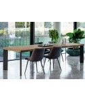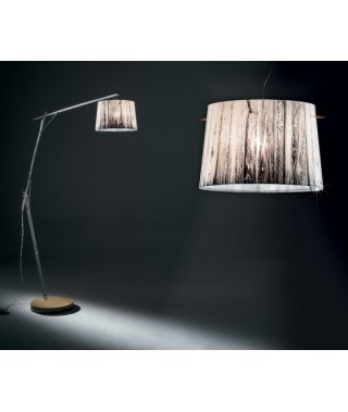 Lampada da terra con base appoggio in legno, finitura rovere chiaro.