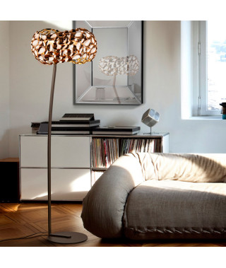 Piantana a 5 luci, in metallo placcato in oro e vernice marrone scuro.
