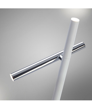 Piantana a 2 luci LED, in metallo con cromatura e bianco opaco.