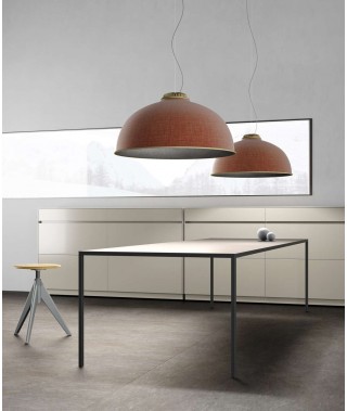 Farel introduce per la prima volta nel catalogo Luceplan l’iconica struttura a cupola, una geometria neutra proposta in materiale termoformato fonoassorbente rivestito di tessuto all’esterno. È possibile personalizzare la lampada grazie a una combinazione di colori del paralume che spaziano da tonalità fredde, calde e neutre per l’esterno, abbinate a toni scuri o chiari per l’interno.