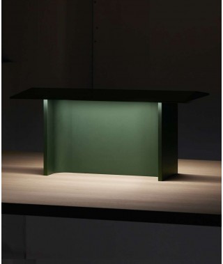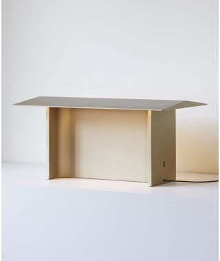 Fienile, una soluzione da tavolo che s’ispira ai semplici edifici rurali della Norvegia attraverso una struttura scandita da un tetto basso e spiovente, pareti centrali e laterali in alluminio anodizzato satinato: una microarchitettura che dall’alto proietta una luce morbida e calda sul piano sottostante, dando vita a inusitate composizioni di luci e ombre. Lungo le pareti laterali la luce scivola con effetto wall-washer creato dalle sorgenti LED dimmerabili con funzione touch.