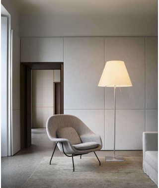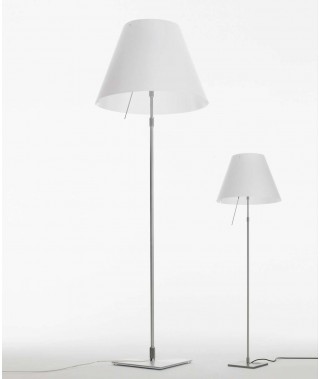 Tradizione e innovazione si incontrano anche nella declinazione da terra di questo classico di Luceplan in formato maxi. Stelo in alluminio e paralume in policarbonato concorrono a valorizzare i grandi spazi con la proverbiale leggerezza e l’intensità luminosa di questa lampada, disponibile nelle versioni con interruttore o dimmer ad astina.