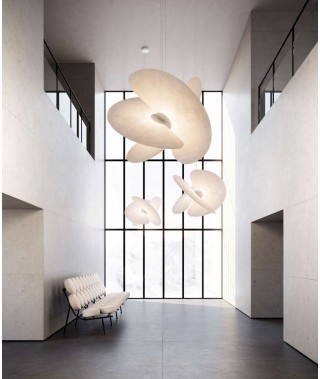 Nasce dall’intuizione creativa del designer, unita alla ricerca materica, tecnologica e progettuale di Luceplan, uno chandelier dal forte impatto emozionale: un nuovo protagonista degli spazi living della casa come per utilizzo contract.