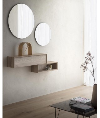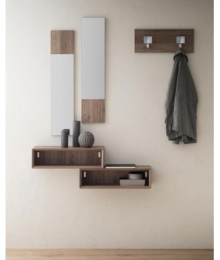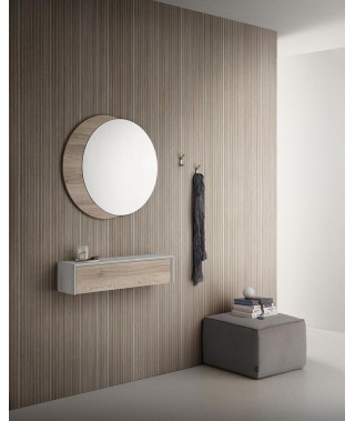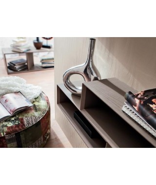 Programma modulare realizzato in melamminico bianco, tortora poro aperto, cricket, polo e rugby, bordato abs in tecnica softforming e montato a 45°.