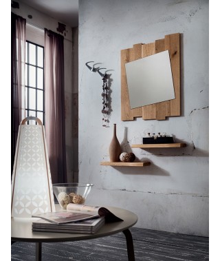 Programma composto da pannelli in legno massiccio di rovere con specchio Sp. 4 mm.