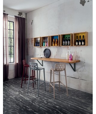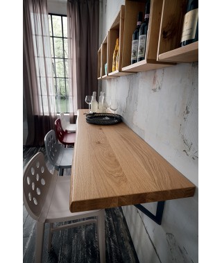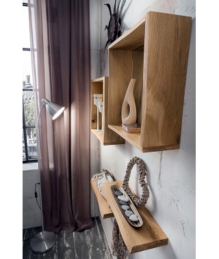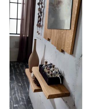 Mensole realizzate in legno massello con bordo effetto scortecciato o metallo verniciato a polvere epossidiche.