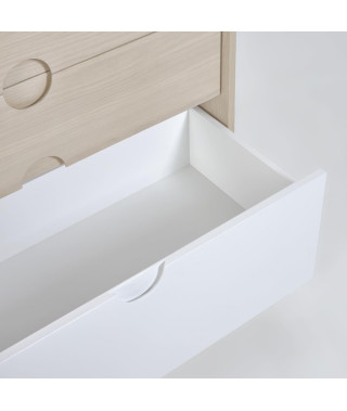 La cassettiera Nunila, in legno di frassino, è una buona opzione per tutto. Infatti è perfetta sia come base per il fasciatoio Nunila, ma anche come comò da usare in ogni stanza. Un must per tutta la famiglia, soprattutto per i primi mesi del tuo piccolo.