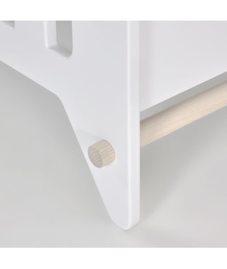 Questa culla Nunila è in MDF laccato e una base letto a 2 altezze, che puó essere alzata rimuovendo un lato. Un pezzo pensato per sognare ... e imparare!