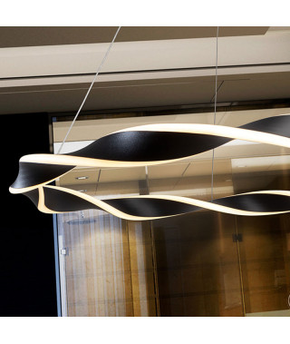 Lampada in metallo e alluminio in color nero opaco granuloso. Diffusore opalescente in silicone. 54W LED. 2.700 lumen. 3.000 K.