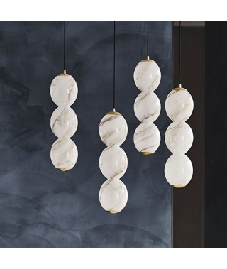 Lampada a soffitto con paralume in vetro soffiato e dettagli in ottone spazzolato.