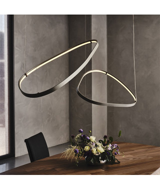 Lampada da soffitto con struttura in acciaio verniciato goffrato titanio (GFM11). Attacco a soffitto in acciaio verniciato goffrato titanio (GFM11) e nero (GFM73).