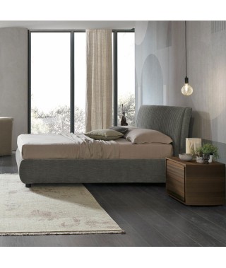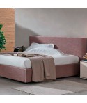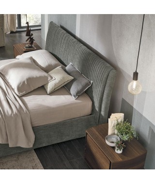 Una testiera imbottita decorata con particolari cuciture verticali: il letto unisce la particolare lavorazione della testiera a quella del giroletto. Lo stile e i materiali sono in perfetta armonia.