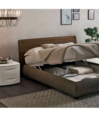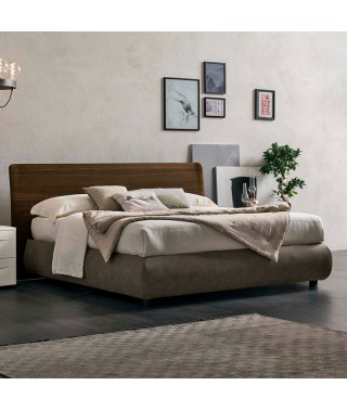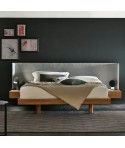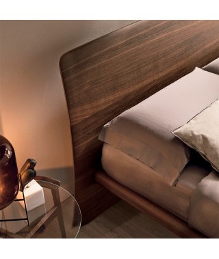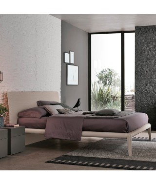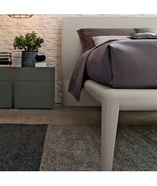 La testiera leggermente curvata e appoggiata a terra è l'elemento distintivo del letto Prado. La notte è soft nella forma e nella tonalità. Disponibile anche con contenitore imbottito.