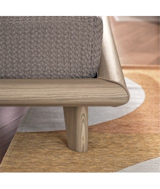E' caratterizzato dalla testiera completamente in legno, composta da un unico elemente, in cui le venature naturali del legno vengono valorizzate.