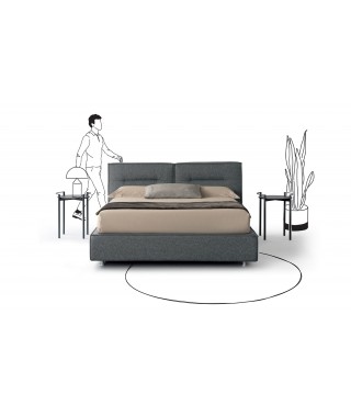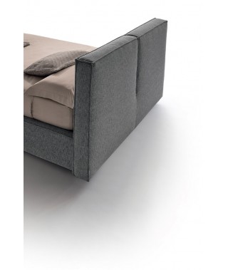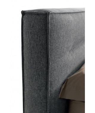 Un letto capace di giocare con l’estetica, mantenendo il massimo comfort. La testata, dallo spessore ampio, morbida e comoda anche nella seduta, viene definita a livello visivo da cuciture tono su tono che creano la forma, la suddividono, creano metaforici tagli nella tela.