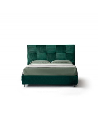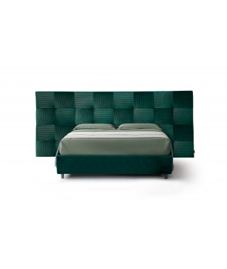 I riquadri sono montati con l’orditura contrapposta per creare un effetto ottico di grande suggestione. I bottoni possono essere sostituiti con Swarovski. La testata è disponibile anche in versione a parete, utilizzabile come boiserie.