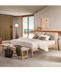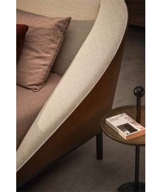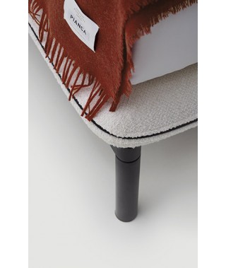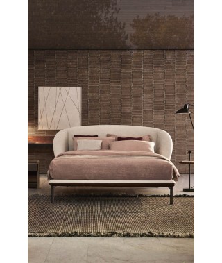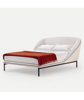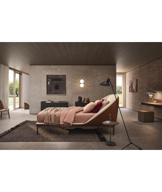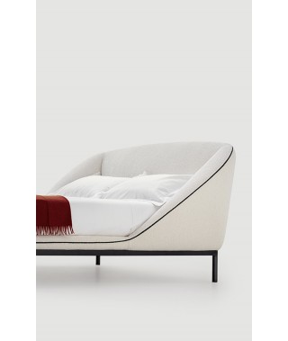 Omaggio al giorno della settimana dedicato al riposo, il letto Domenica è un invito all’ozio, all’abbandono di un abbraccio materico, caldo e protettivo. Un’alcova in cui risposare, leggere e oziare, dolcemente accolti da forme morbide di una struttura che crea una nicchia, sicura e intima. Un’unica linea continua dà origine a una silhouette organica e delicata: la cerniera a vista, caratterizza il profilo del letto, trasformandosi da elemento funzionale a dettaglio distintivo. La linea del letto si allarga maestosa e poi curva a scendere, diagonale e veloce, come a chiudere la figura in modo da proteggere/nascondere/ riparare. Non solo un letto, ma un luogo e in una certa misura anche una architettura di interni pensata per far riposare le emozioni. La base metallica conferisce ulteriore leggerezza alla struttura, sospendendola, apparentemente, nel vuoto. Opzionale, il box contenitore, per organizzare al meglio gli ambienti.