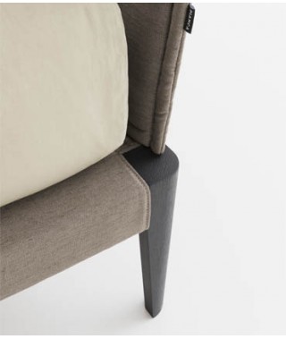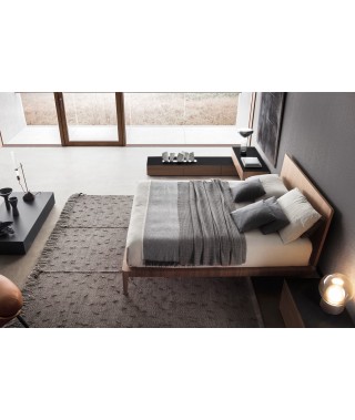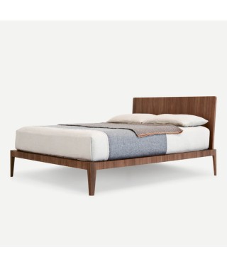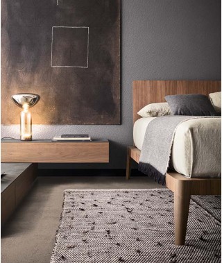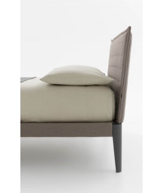 Simmetria e semplicità al servizio di un design rassicurante, ma camaleontico. Volumi netti, superfici continue, profili snelli e smussati: è un linguaggio espressivo che parla di concretezza e di modernità. Slanciati e disegnati come tacchi, i piedi sono affascinanti elementi distintivi. Testiera e giroletto sono rivestibili in tessuto o in pelle, per una versione più calda e sofisticata. Ampiamente personalizzabile è anche la struttura, disponibile laccata opaca oltre che in essenza.