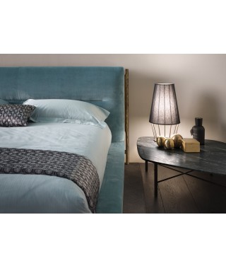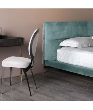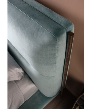 Il giroletto e la testata sono rivestiti in tessuto, pelle o ecopelle nelle numerose proposte del campionario. I gambi della testat salgono a formare un elemento portante decorativo in ferro battuto.