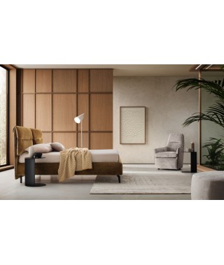 Letto contenitore dal rivestimento in tessuto, Academy sposa in toto la cauta aderenza alle norme della semplicità, lasciando voce solo ad un pacato bordino in rilievo. E’ nella testiera che l’eccezione conferma la regola, grazie all’inusuale, quanto originale, orientamento rovesciato dei cuscini i quali, sollevandosi, inaugurano inaspettate e comode pose, una nuova frontiera del confort, tutta da sperimentare.