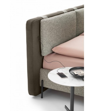 Dal suggestivo immaginario di sinuose e carezzevoli distese innevate, nasce Cortina, letto imbottito dominato da geometrie curvilinee e avvolgenti; un modello dal design innovativo, aperto al dialogo con innovative forme di interpretazione del quotidiano, a partire dalle opzionali luci a led touch sensor applicate alla testiera: due stelle luminose illuminano il riposo notturno.
