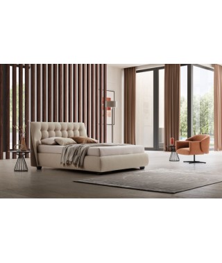 La geometria di Guscio è dominata da un reticolo di sinuose curvature che, nell’invitare all’abbandono, convergono energiche in un fulcro centrale, rappresentato dalla salda testiera che gentilmente protende le sue estremità ad inglobare la base del letto. Un design che invita i volumi ad avvolgere per proteggere, a custodire la preziosa dimensione del riposo, ingentilendola mediante la fine trapuntatura del rivestimento.