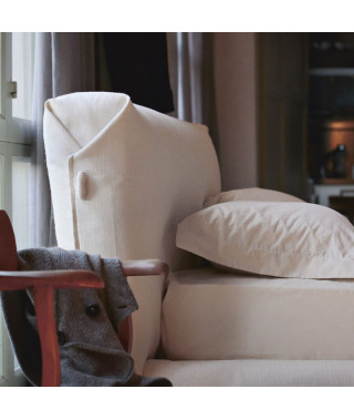 L’originale “cucito a busta” con gli alamari sartoriali realizzati nello stesso tessuto del rivestimento.