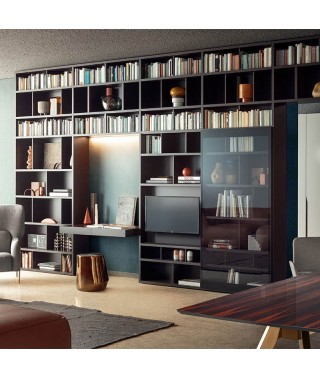 Il concetto classico di libreria si apre a nuove versatili possibilità, in grado di accogliere oggetti, libri, monitor tv, suddividere gli ambienti della casa ed integrare soluzioni home office.